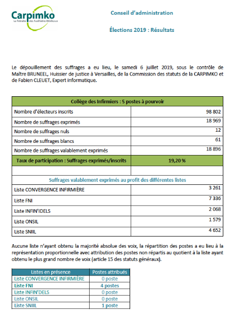 En premier lieu la FNI remercie toutes celles et ceux qui lui ont témoigné leur confiance et ont voté pour elle. La Fédération assure toutes et tous les IDEL qu’elle travaillera avec tous dans le sens de l’intérêt général et collectif face aux défis de la réforme du système de retraite.